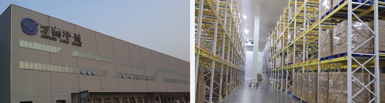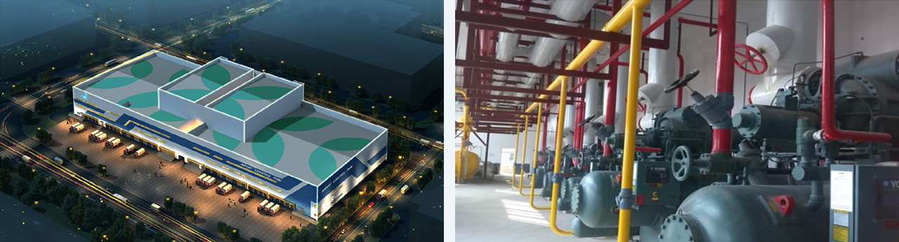 1#2#加封閉式冷藏碼頭,總建筑面積14344㎡,總存儲容積165640m3,高低溫冷庫凈層高24米二間,為全自動立體化冷庫,另凈高12米2間,其中設(shè)一間變溫庫。氨制冷系統(tǒng),末端吊頂式冷風機,自動熱氨融霜加自然融霜,位于福建廈門,為中國第一座超過24米的立體冷庫,也是廈門首個集冷凍、冷藏、恒溫、常溫于一體的多溫層現(xiàn)代化冷庫。